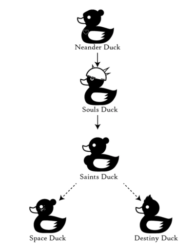 The grand-kid of Neanderduck and the great great grandmother of Saints Duck and Space Duck, born on March 12, 1578 (2014).